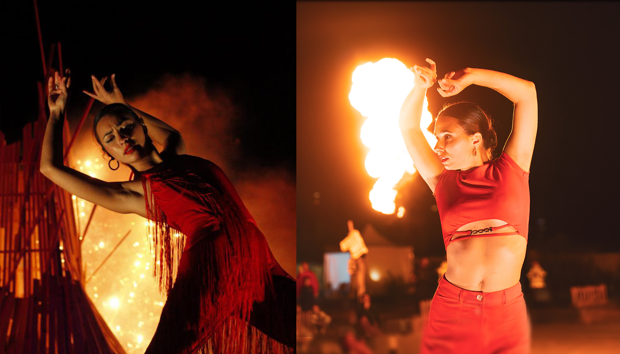 L’éclat d’un silex fait jaillir les premières incandescences du spectacle, une guitare flirte avec les notes reconnaissables du Boléro. Les sonorités Arabo Andalouses, si inspirantes pour Ravel sont là au premier plan.