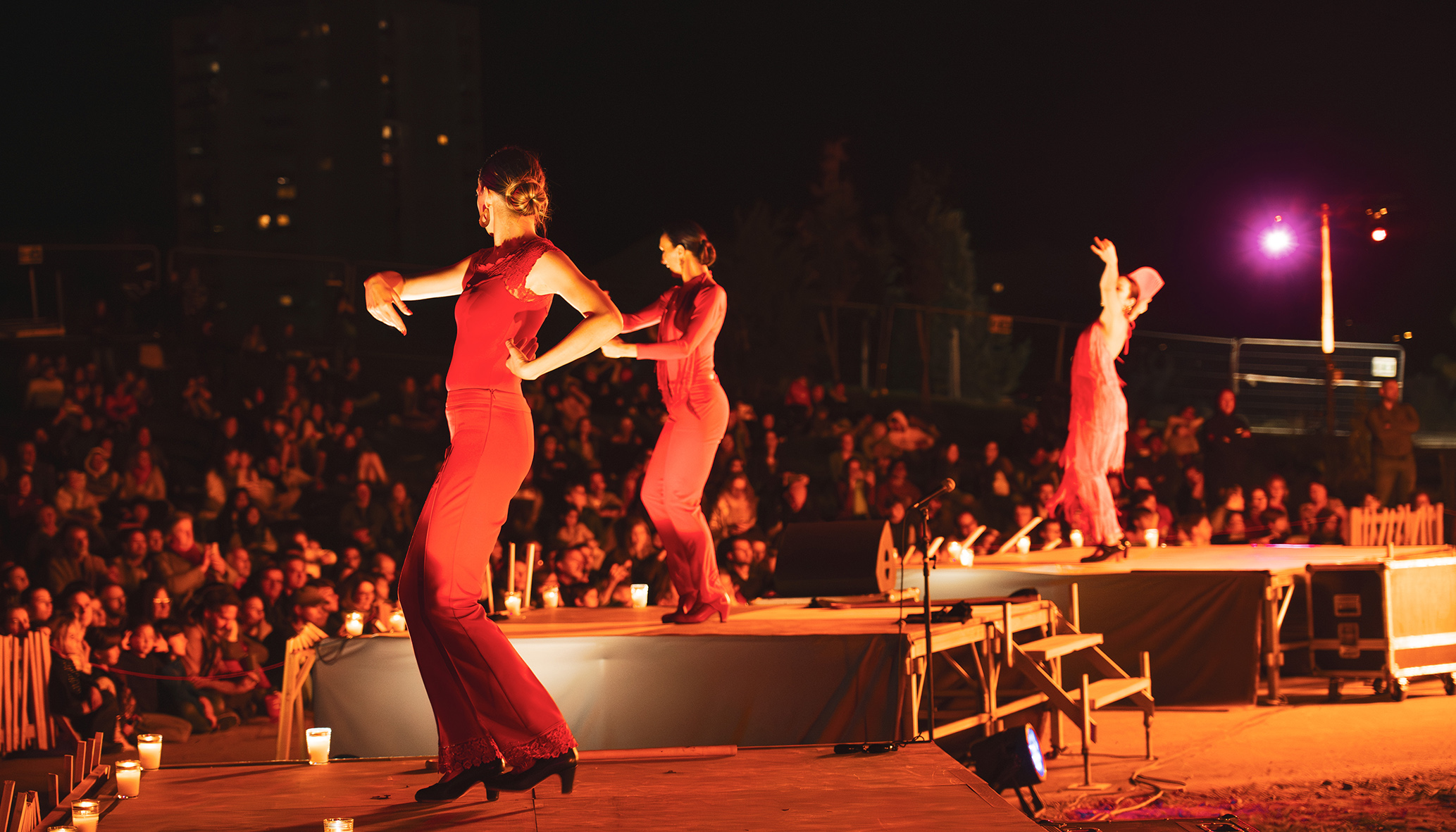 L’éclat d’un silex fait jaillir les premières incandescences du spectacle, une guitare flirte avec les notes reconnaissables du Boléro. Les sonorités Arabo Andalouses, si inspirantes pour Ravel sont là au premier plan.